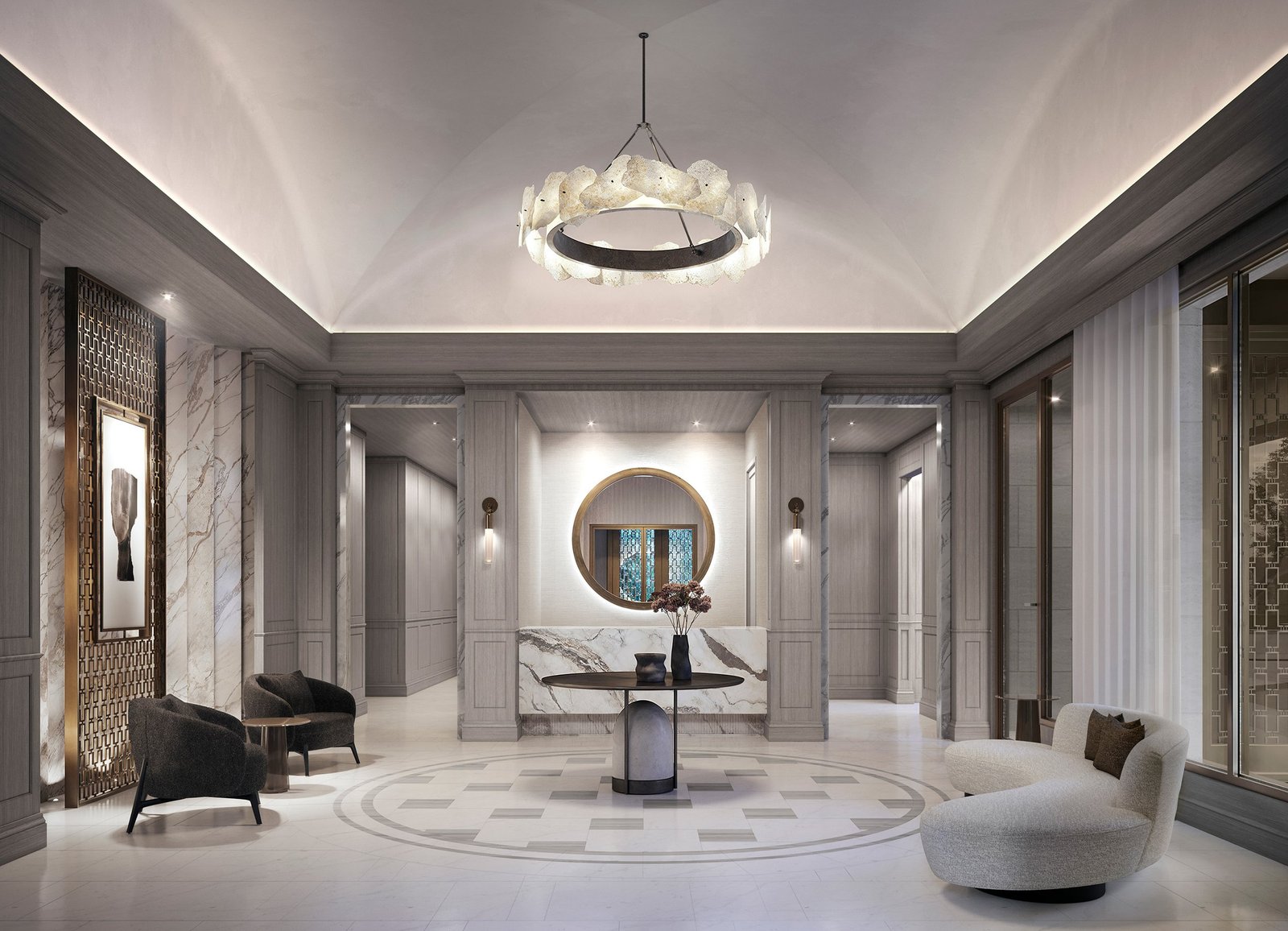 Luxurious lobby interior of 2 Post Road Condo in Toronto featuring modern design and elegant decor.